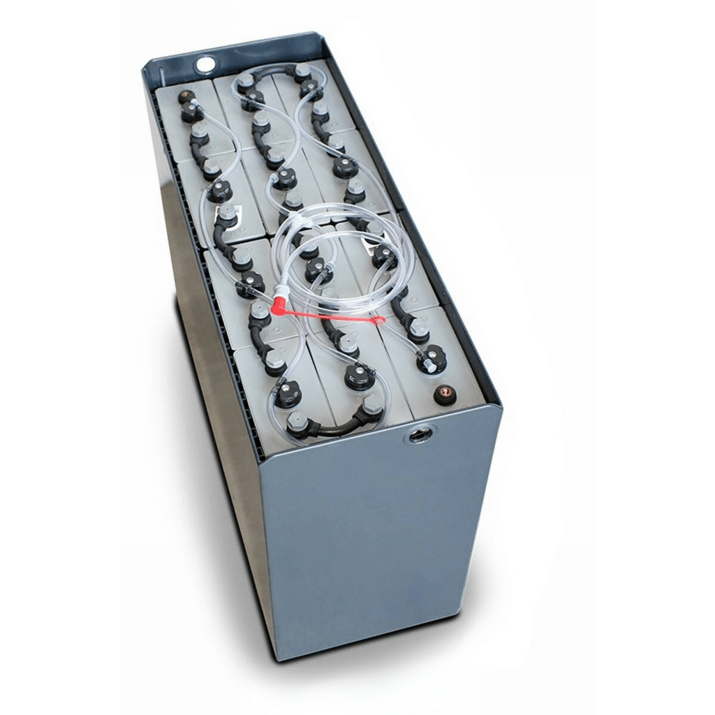 La batería 24V5PZS625 se entrega completa, incluyendo cableado, terminales, conectores y cofre, ofreciendo una solución integral para carretillas elevadoras y otros equipos industriales.