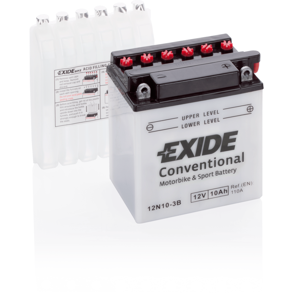 Batería Exide 12N10-3B Moto 12V Conventional. 12V – 10Ah/110A (EN) (135x75x145mm)