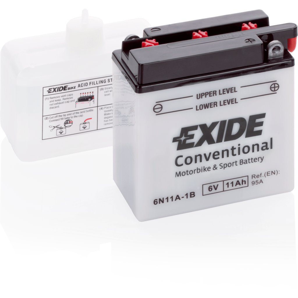 La batería Exide 6N11A-1B es una batería de plomo-ácido convencional diseñada específicamente para motocicletas, que destaca por su excelente rendimiento y durabilidad. Fabricada por EXIDE, marca líder en baterías de alta calidad.