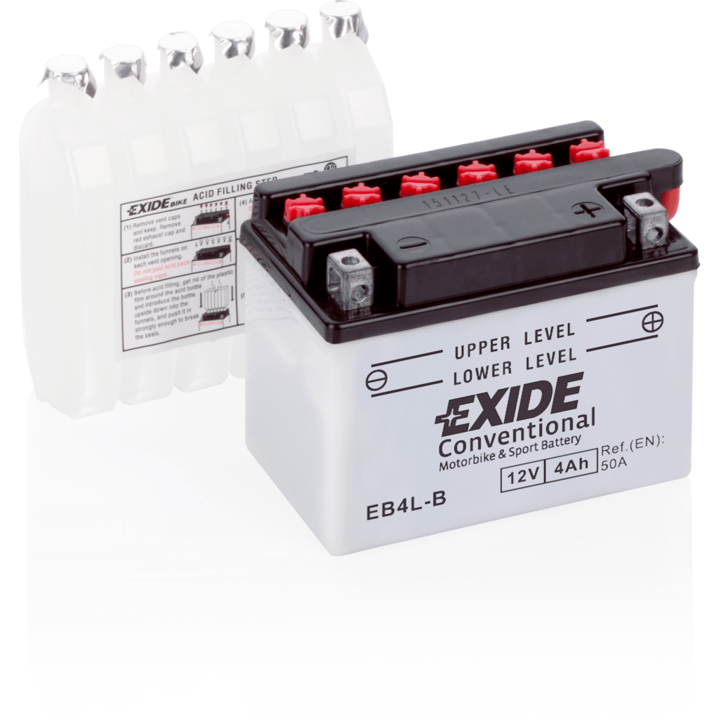 La Exide EB4L-B es la elección ideal para quienes buscan una batería de moto confiable, duradera y eficiente, diseñada para ofrecer un rendimiento óptimo en todo momento.