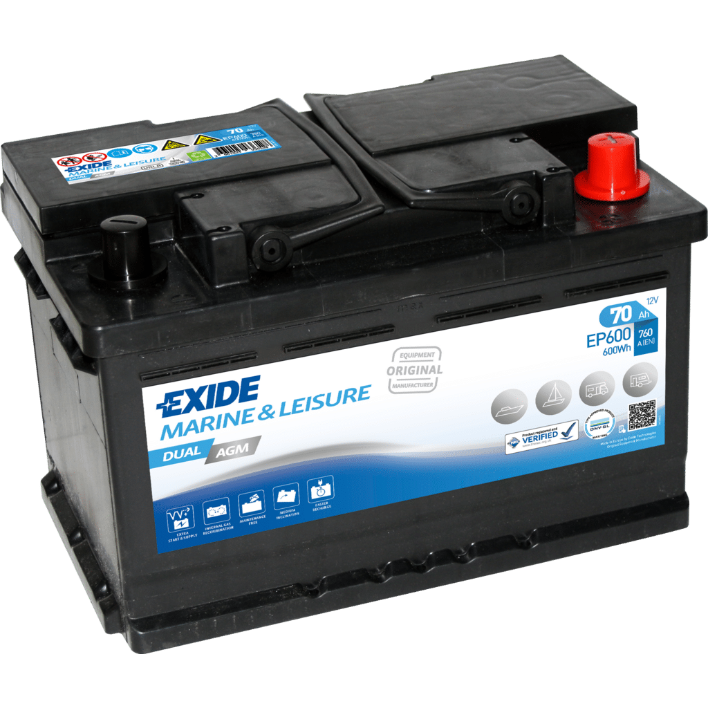 Batería Exide EP600 Marina Dual AGM 12V 70Ah/760A – Rendimiento y Durabilidad
