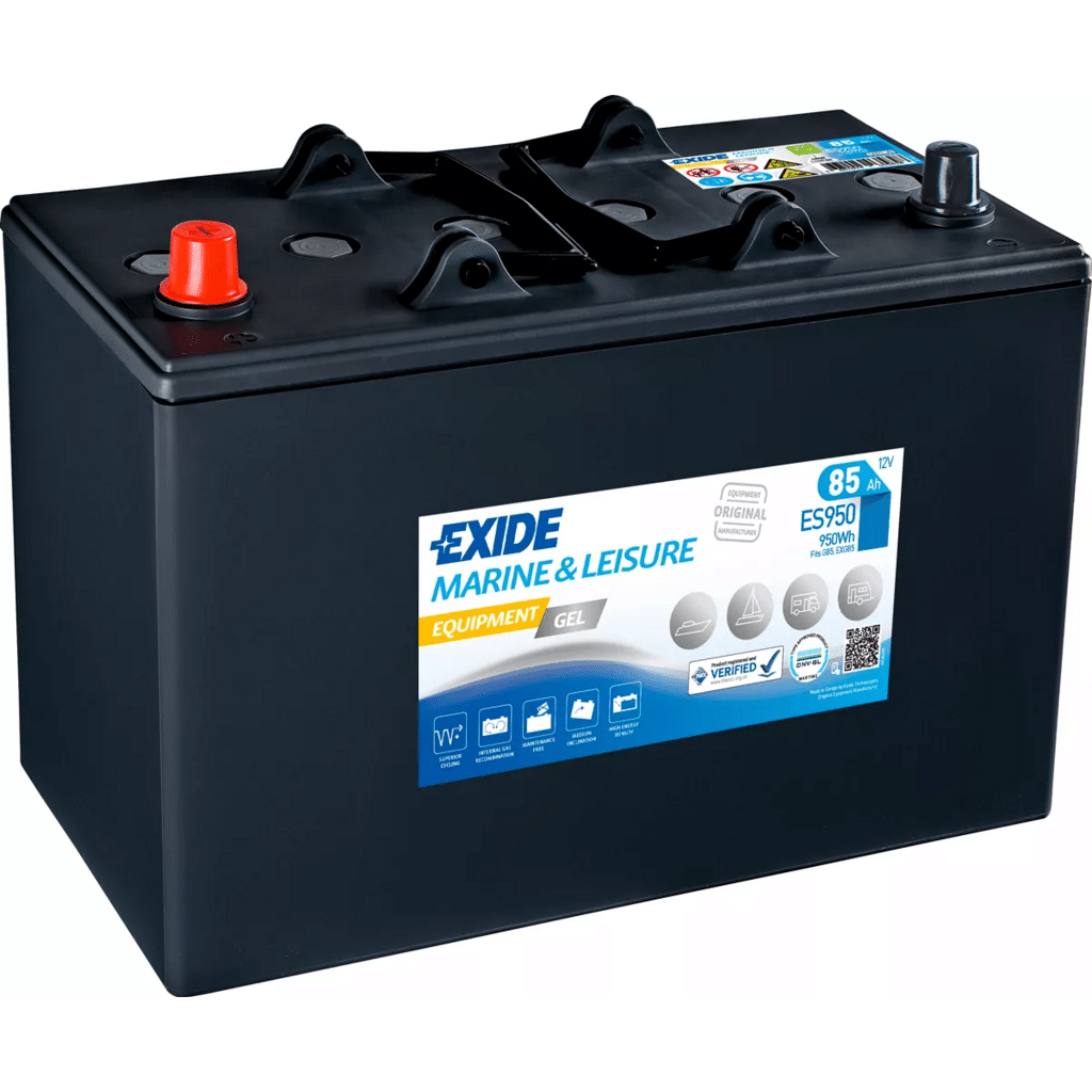 La Exide ES950 es una batería de gel diseñada para ofrecer una fuente de energía confiable en barcos, autocaravanas y sistemas solares. Su construcción sellada permite una instalación segura en diferentes posiciones (hasta 90° de inclinación), asegurando rendimiento óptimo en entornos exigentes.