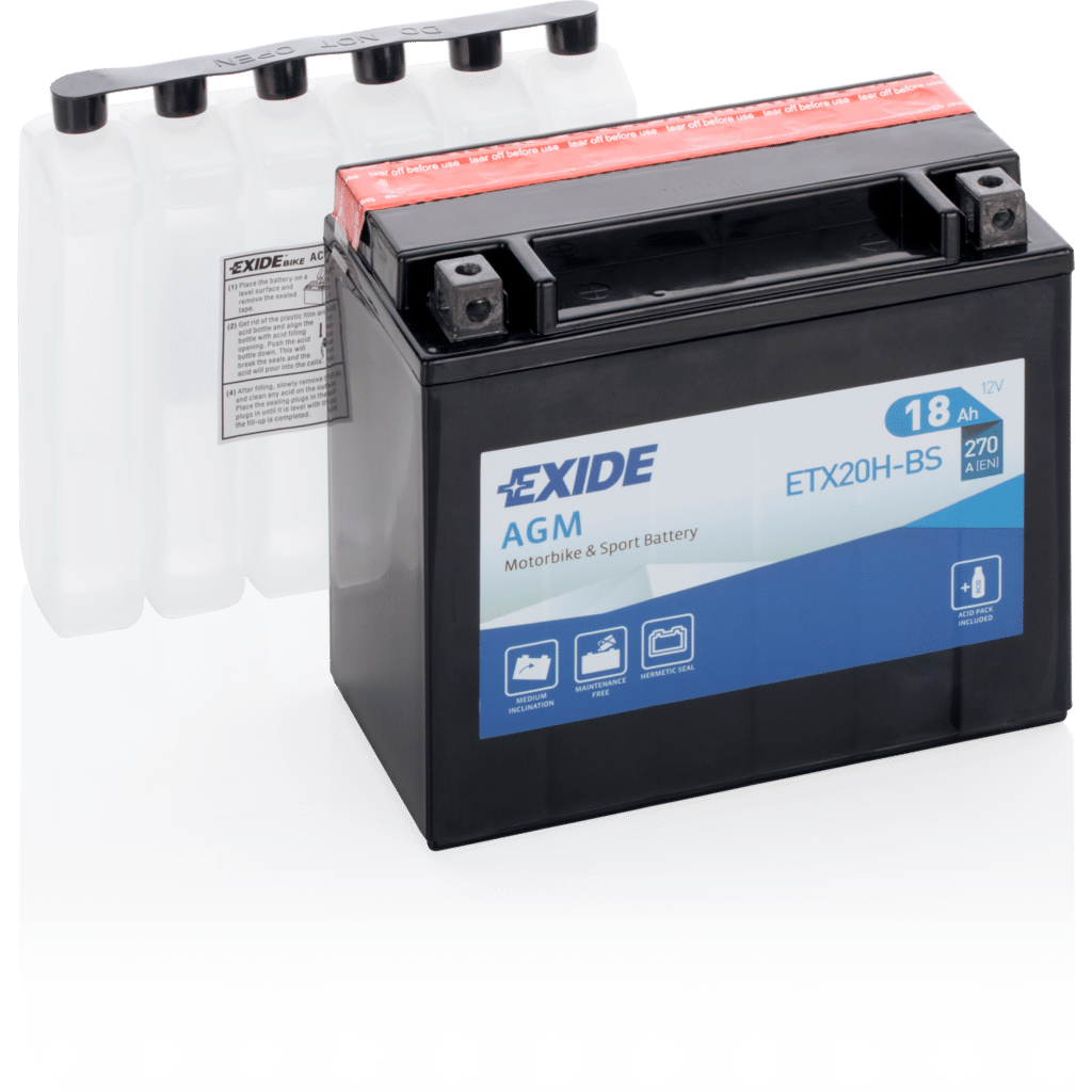 Batería Exide ETX20H-BS Moto 12V Agm. Tecnología AGM. 12V – 18Ah/270A (EN) (175x87x155mm)