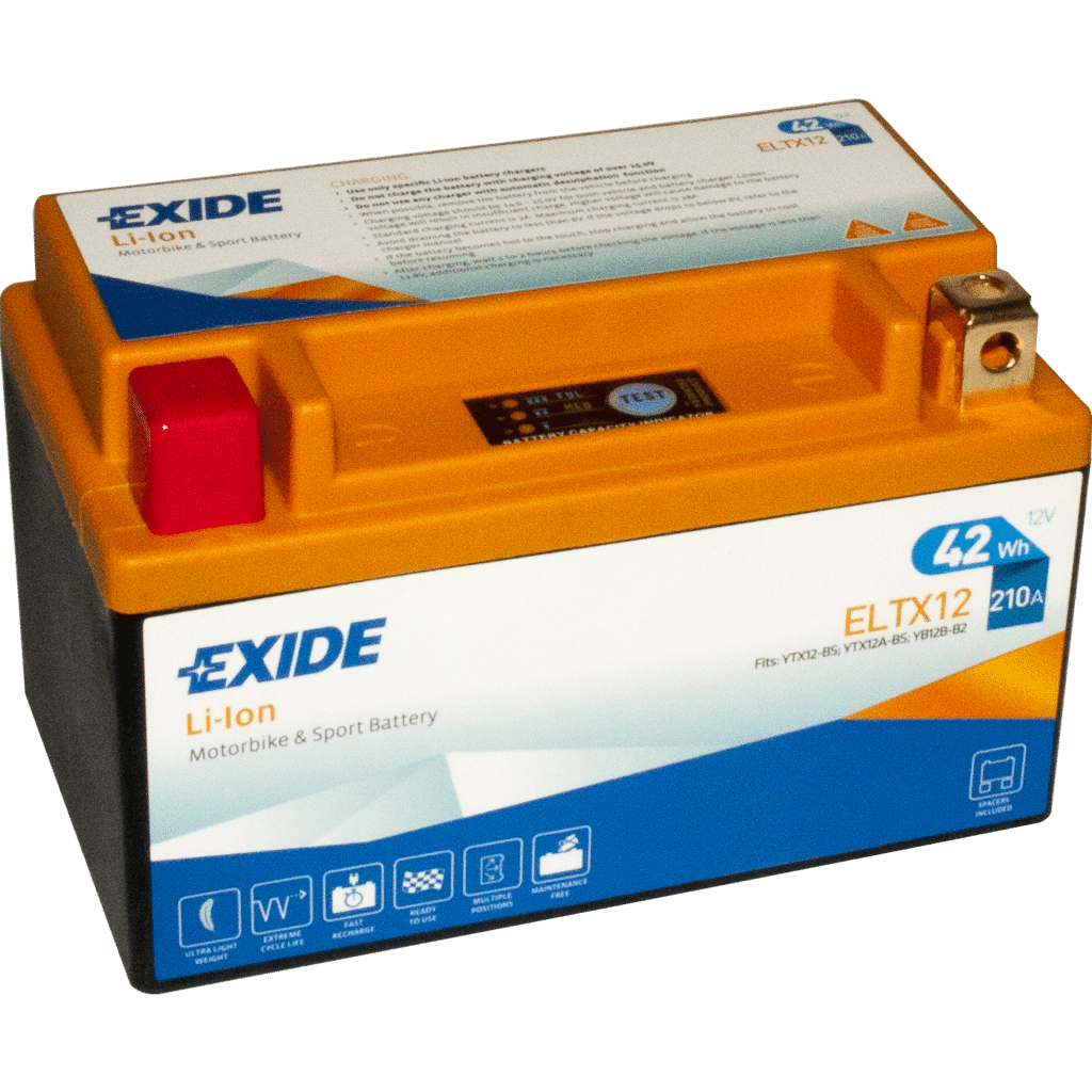 La Batería Exide ELTX12 es una opción innovadora para motocicletas que requieren alta potencia de arranque, menor peso y una mayor vida útil. Gracias a su avanzada tecnología de litio, proporciona un rendimiento superior y fiabilidad en comparación con las baterías convencionales.